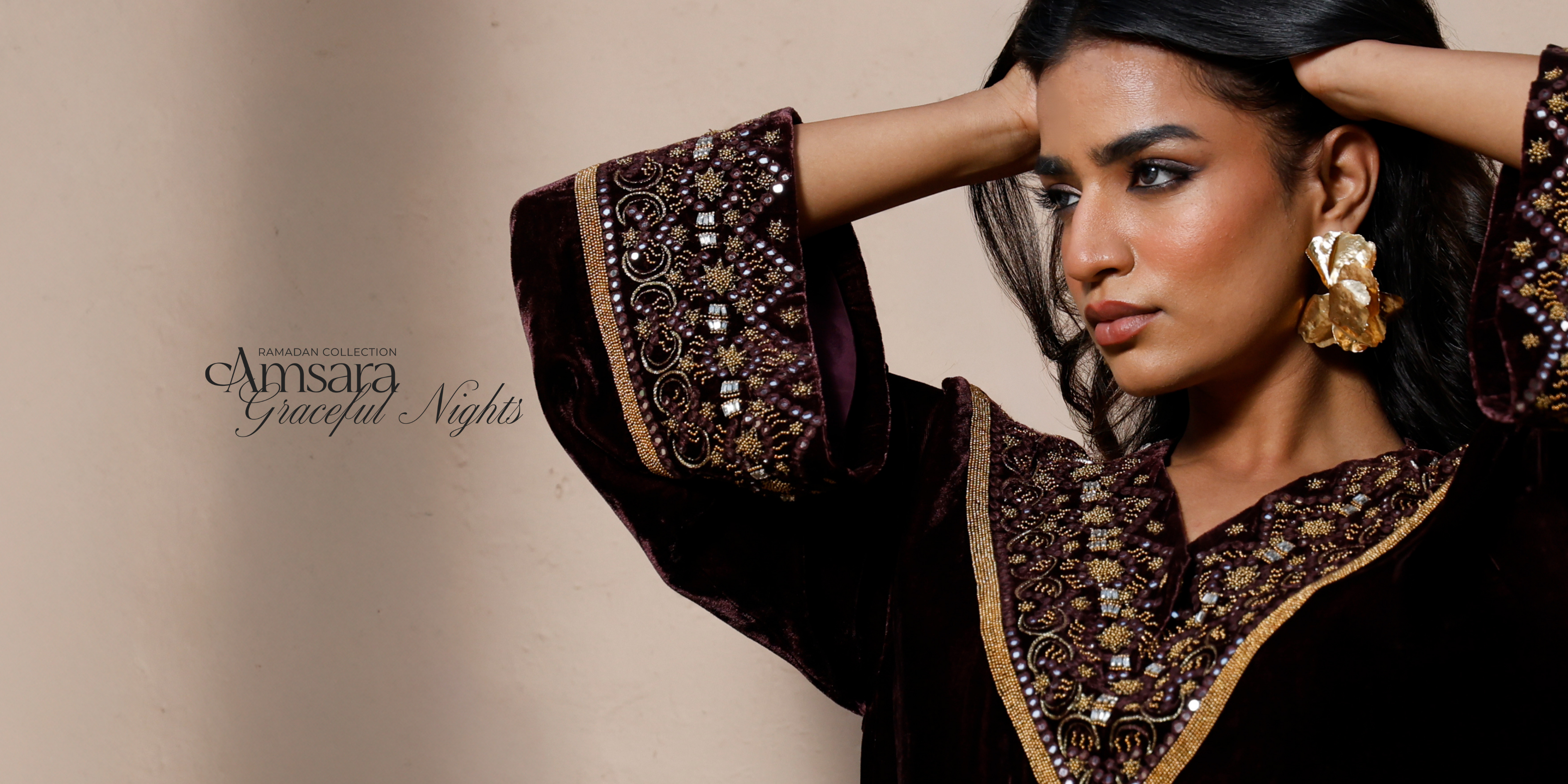 في رمضان، تتغيّر الإيقاعات… وتأتي AMSARA لتعكس هذا التحوّل. مجموعة مستوحاة من ليالٍ هادئة، من لحظات بسيطة تحمل عمقًا غير معلن. قصّات انسيابية، خامات فاخرة، وتفاصيل تظهر بهدوء. فساتين وجلابيات مصنوعة من المخمل، الكريب، والحرير، ومزيّنة بتطريزات يدوية راقية، توازن بين الحِرفية والراحة.
